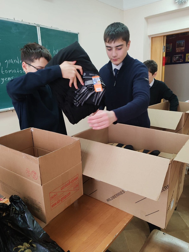 В нашей школе прошла акция «Новогодняя посылка солдату» по сбору гуманитарной помощи участникам СВО. Цель акции: поддержать боевой дух солдат в преддверии Нового года и показать единство нашего народа.